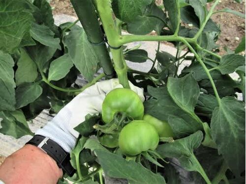 トマト連続摘芯栽培は1回目の捻枝(ねんし)を行いました。 最初の第1花房が飛んだ状態になっている今年のトマト。通常の第2花房の位置に第1花房が着いています。例年なら、第1花房までは普通の1本仕立てと同じで、第2花房から連続摘芯栽培をスタート…