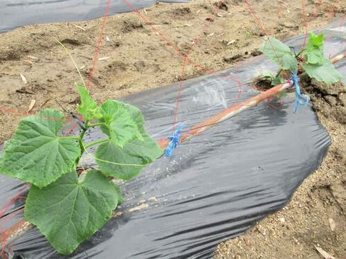 キュウリの蔓上げをしました。ネットへの誘引です。植付けから10日ほど経ちました。本来なら、今頃がこの辺りの植え付けの適期です。早めの植付けなので、周りを不織布で囲いました。品種は「夏すずみ」。今年は、本葉3枚程度で姿の良い苗を植えることが…