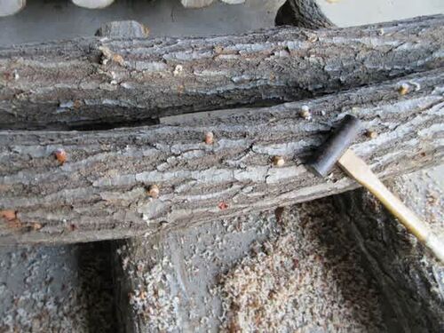 原木シイタケの植菌をしました。過日伐採した原木のナラの木は、作業場の下屋に搬入しコモを掛けてあります。当地は長期間降水量が極端に少なく、原木自体が乾いています。切り口にはひび割れが見え始めました。シイタケ原木は直径10~15㎝が理想とされ…