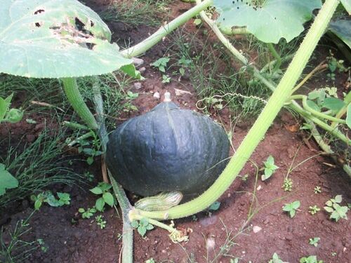 今年のカボチャは仕立て方が統一できず、親蔓1本仕立てと親蔓子蔓の2本仕立ての組み合わせとなりました。何度か誘引整枝をし、基本的にわき芽を全て掻き主枝を伸ばしています。株元方向から見るとこうです。1番果を着けた後、2番果、3番果と着けるよう…