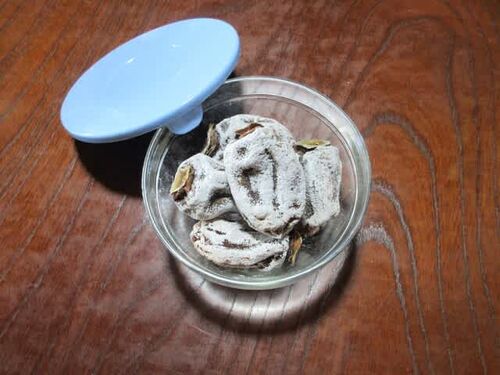 干し柿は、干し始めから2ヵ月半余り。あんぽ柿から白粉が回り始めたころ柿の姿に変化してから1ヵ月ほどが経ちました。干し柿全体に白粉がすっかり回りました。吊したまま放置すると乾燥がより進み硬くなってくるので昨年末には室内に取り込みました。さらに…