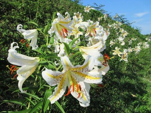当集落の幹線道路側の山裾にヤマユリがさらに多くなっていました。この場所は昨年立木を伐採し、山裾を刈り払いしたところ。昨年既に10株余り見ていました。今年はかなり繁殖したようです。以前から何株かあったのかもしれませんが、あまり道路からは見え…