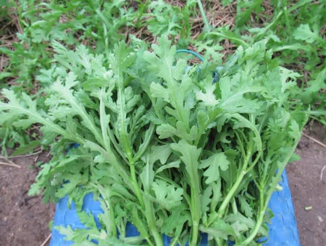 間引きの延長のようなものですが、しっかり使えるシュンギクにしてから抜き取ります。