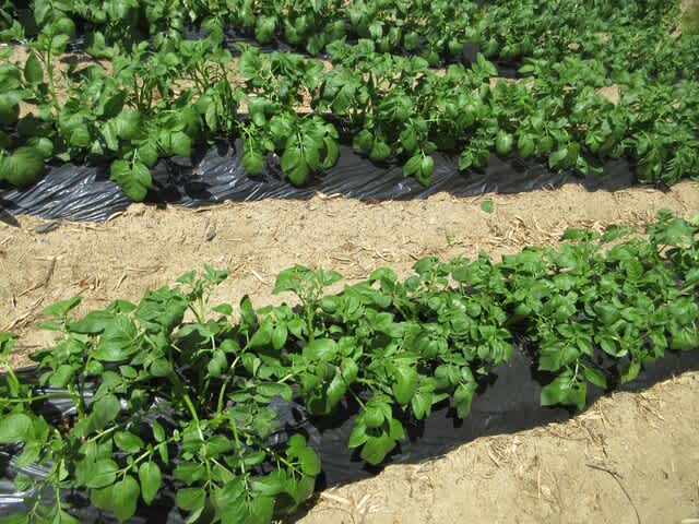 ジャガイモは大部分黒ポリマルチをして植え付けています。