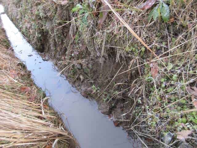 コンクリート製の側溝が壊れることはそうないのですが、土の側溝や土手が問題です。