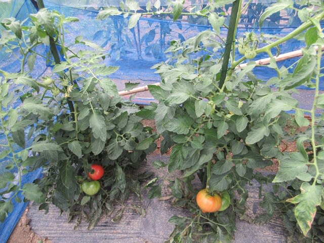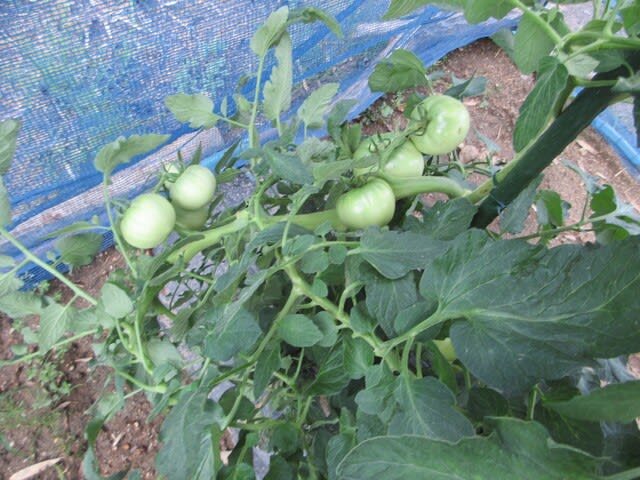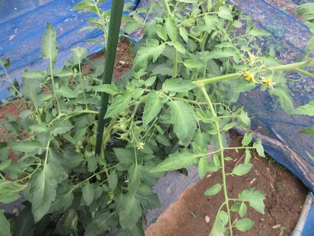 こちらは庭外れに植えている番外の中玉トマト。