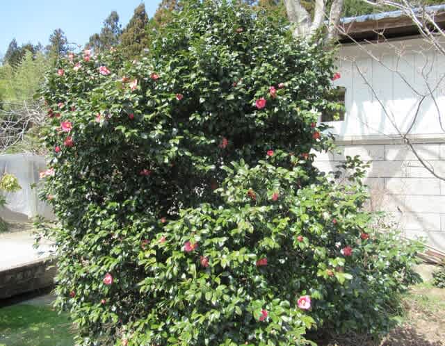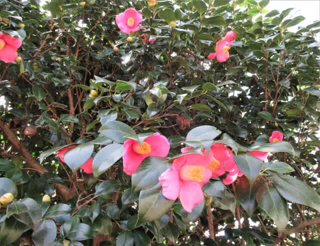 これは我が家の入り口の道路そばにあるやぶ椿。