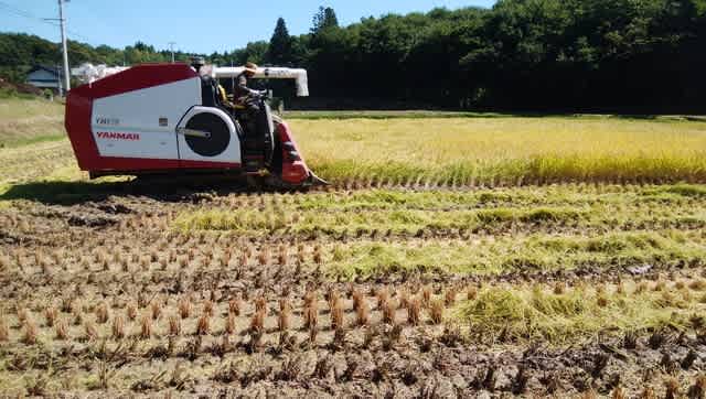 2018-09-23 今年の稲刈り無事終了 田んぼ 本日、稲刈りが無事終了しました。 一昨日から昨日までかなり雨が降りましたので今日は無理かと思いましたが、刈り取り調製を委託している法人から連絡があり、急遽やることになったものです。 明日からまた天候が崩れる予報で、倒伏も進んでいましたので幸いでした。田んぼはかなりぬかっており、キャタピラーの跡がすごい状態ですが、しょうがないです。 稲刈り調製作業の委託はもう二十年くらいになります。オペレーターは懇意にしている法人の前代表(現代表の父)でさすがの熟練の技です。