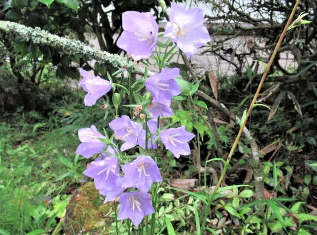 カンパニュラがあること自体、気付いて何年も経っていません。やはり母健在の頃に地植えしたものと思います。それから殖えたものと思われる株がいくつかあります。今咲き残っているのはこれだけで、他は終りました。この株は周りの植木で日陰になるため残っているのでしょう。
