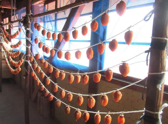 最近は冷え込みも強まり、大玉の柿も順調に乾燥が進んで、あんぽ柿が出来上がったようです。