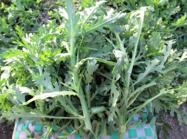 シュンギクは茎が太く葉もしっかりしていることが大事です。