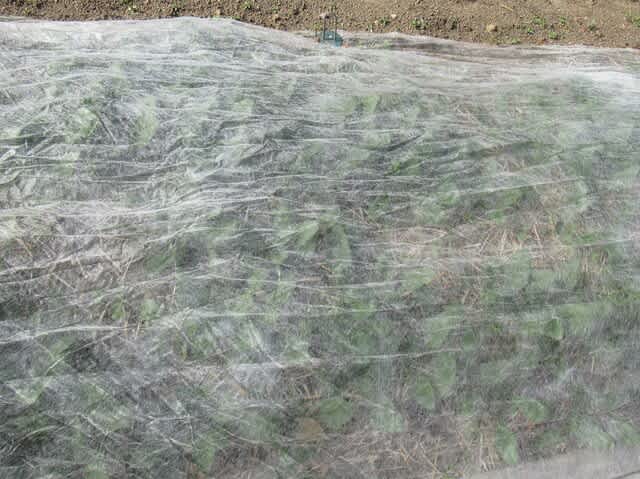 今月早々に不織布のべた掛けをしました。発芽、生育とも順調。