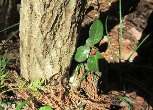 近くにはヤブコウジが赤い実を着けまだ残っていました。