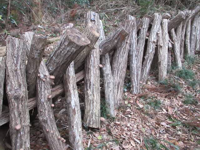 主に穫れているのが左奥の今年植菌3年目になる原木。