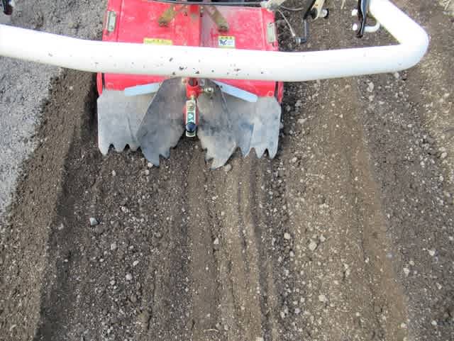 ローターの爪を左側を外向き、右側を内向きにし、左回りに往復して畝を作ります。畝間は80センチと広めです。